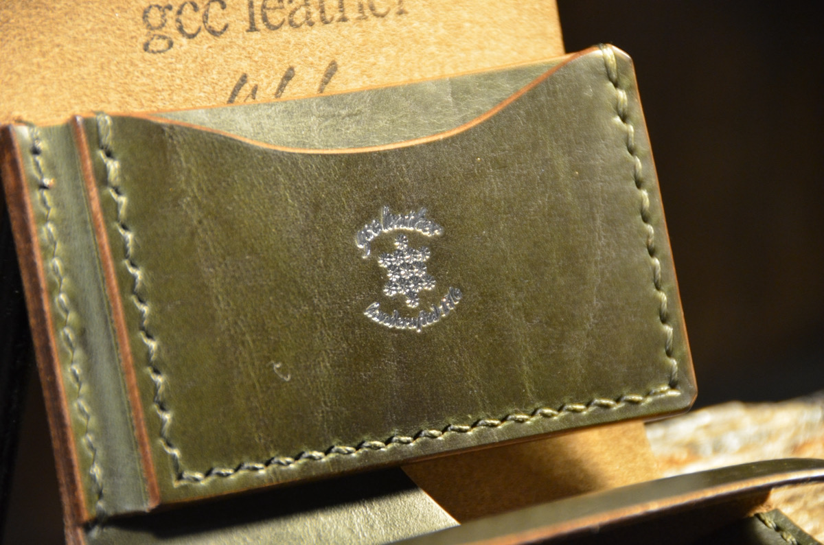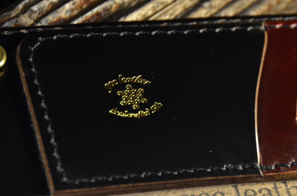 ロゴ刻印に箔押し。